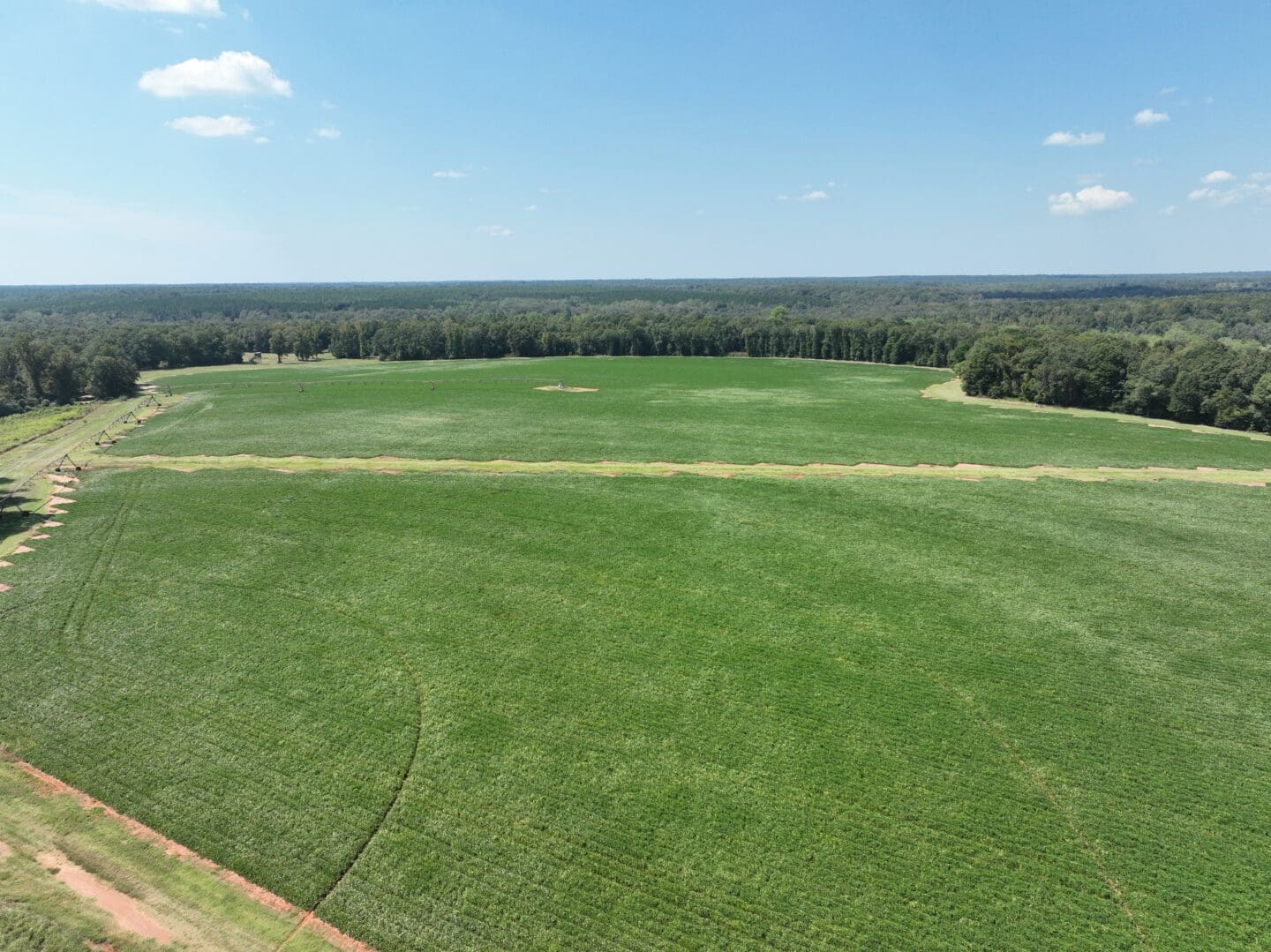 The property contains 2 center pivots covering 76+/- acres, 80+/- acres of long leaf pines, 150+/- acres of merchantable pine timber, Carter Creek frontage, duck pond, an equipment shelter, new remodeled one bed one bath cabin and miles of well established interior road systems.